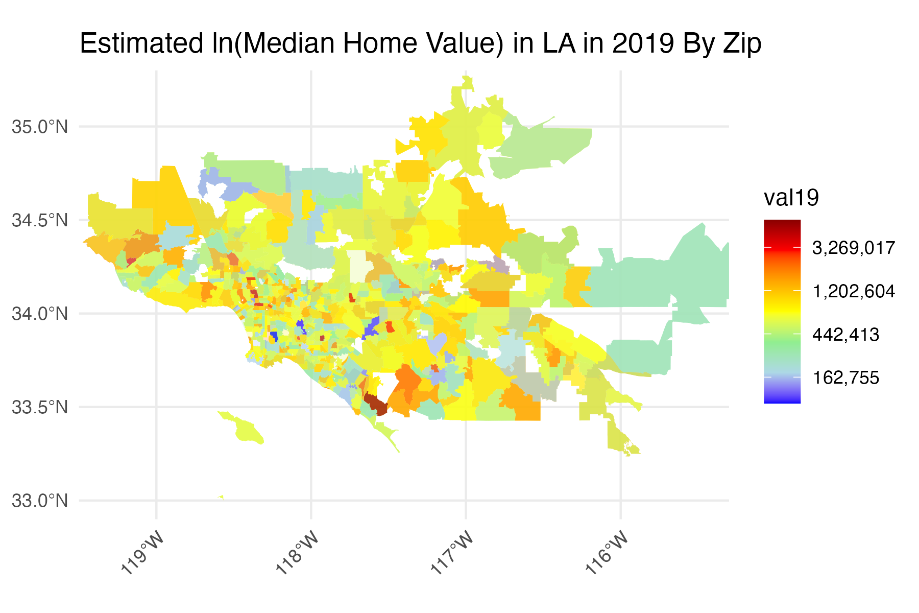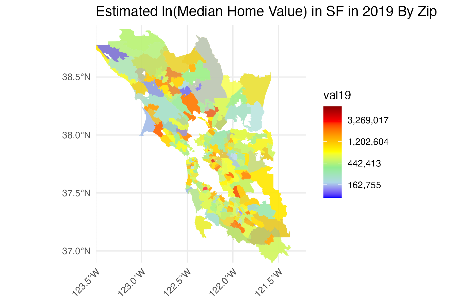 Figure 1 and 2: Estimated Log-Transformed Median Home Value in SF/LA in 2019