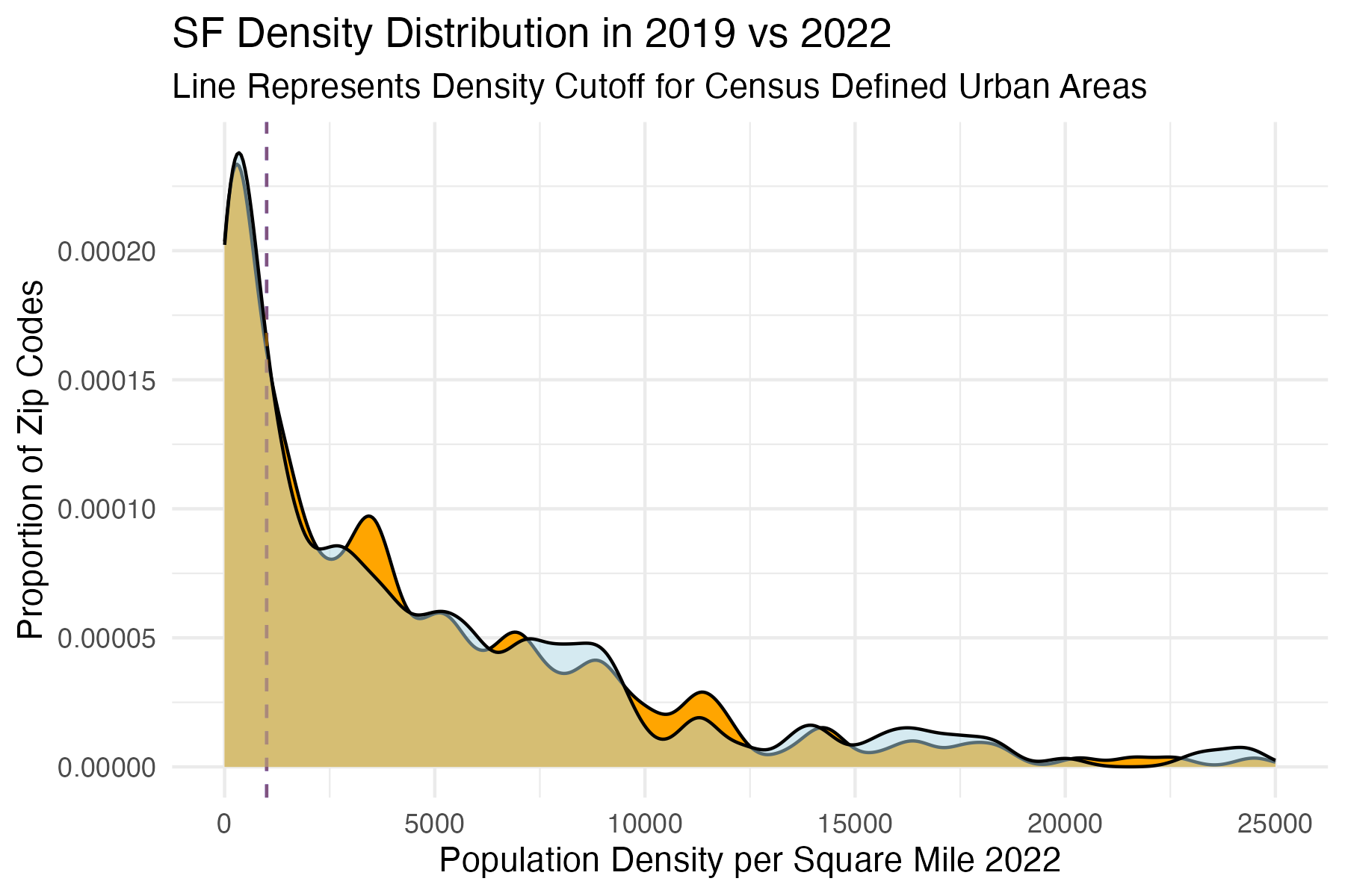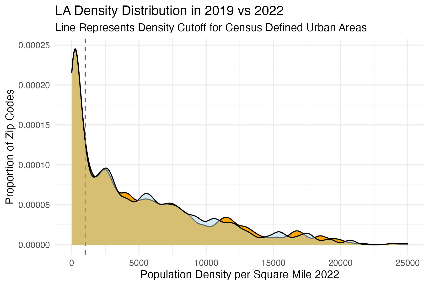 Figure 5 and 6: Comparing Population Density Change in SF/LA 2019 – 2022