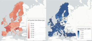 Over the past decade, populist parties have been gaining ground across Europe; as a result, they are reshaping national politics, influencing EU decision-making, and challenging liberal democratic norms. Most of the public debate frames this rise as a reaction to immigration which poses a cultural threat and erodes a perceived white, Christian European identity. Yet while populists have made immigration a salient issue in EU politics, some of the strongest surges in populism are happening in places least affected by immigration. In Portugal’s Alentejo region, for example, migrant inflows remain close to zero, however support for populist parties has grown substantially over the past decade – rising nearly ten-fold between 2019 and 2022. By contrast, regions like Vienna, which receive some of the highest migrant inflows in Europe, show far weaker populist reactions.