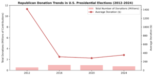 Figure 2. Total Contributions and Average Donation Size in Republican Presidential Campaigns, 2012-2024